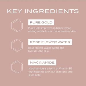 Key Ingredients: Gold particles improve microcirculation to improve radiance while adding a subtle luster that enhances skin while rose water hydrates and balances.