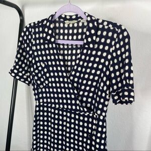 11•1•tylho Anthropologie Navy Blue Polka Dot Wrap Dress