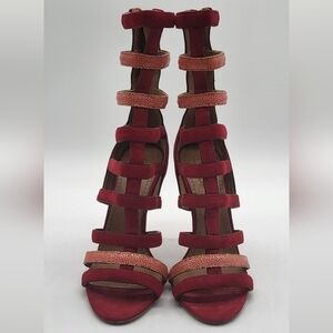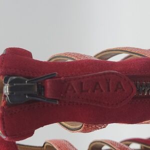 1120- Alaïa High Gladiator Red Suede Sandals Made In Italy Size 8.5
