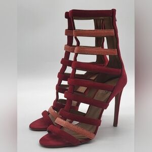 Alaïa High Gladiator Red Suede Sandals Made In Italy Size 8.5