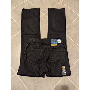 The Wrangler Women's Ultimate Riding Jean Mid Rise Willow Bootcut in Aubree is a stylish and versatile pair of black jeans made from a comfortable blend of spandex, polyester, cotton, and rayon. These mid-rise jeans feature a flattering bootcut style, a zipper closure, and button accents. The 5-pocket design and woven logo add a touch of detail to the classic design, making them suitable for casual wear in any season. Perfect for women who appreciate quality and style in their clothing choices, these jeans offer both comfort and fashion with the iconic Wrangler brand.