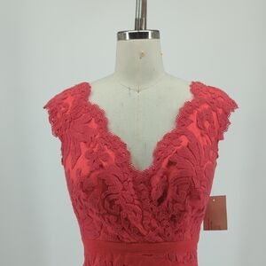 Stunning red lace dress with intricate floral patterns. Perfect for special occasions.