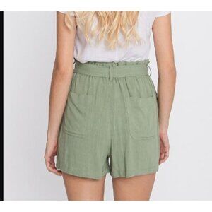 #1133 GeeGee NWT Plus Sage Green Casual High Waisted Linen Shorts Sizes 1X-3X