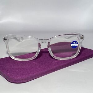 If you're searching for a pair of readers that not only offer exceptional visual clarity but also enhance your style, then look no further. These soft butterfly-style readers are designed to provide maximum comfort and fashion-forward appeal. With a magnification power of 4.0 these reading glasses are perfect for individuals who need a little extra help when reading or engaging in close-up tasks. Whether you're perusing your favorite book, working on your laptop, or simply enjoying your hobbies, the Colette 4.0 Clear Reading Glasses will ensure that every word is crystal clear. Featuring a beautiful blue color, these glasses add a touch of sophistication to your overall look. The soft butterfly-style frames are not only trendy but also incredibly comfortable to wear. They are meticulously crafted to fit most face shapes and sizes, ensuring a snug yet gentle fit.