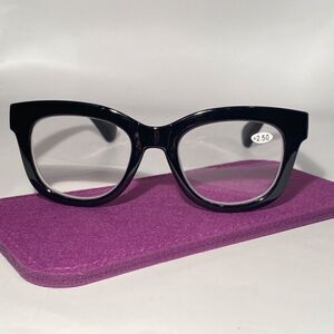 1142 Mona Reading Glasses 2.50 Sq Eyeglasses Black Frames Readers NWT
