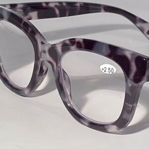 Spring Hinges With case. Upgrade your reading experience with these stylish 2.50 reading glasses. Featuring grey and black tortoise frames with a square shape, these glasses offer both fashion and function. The lightweight and durable design makes them the perfect choice for everyday wear. With an attractive and modern look, these glasses will complement any outfit and style. So, whether you're reading a book, working at a computer, or just need a little extra help with reading, these glasses have got you covered. Enjoy clear and comfortable vision.