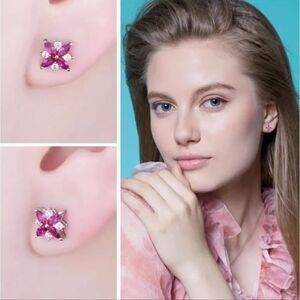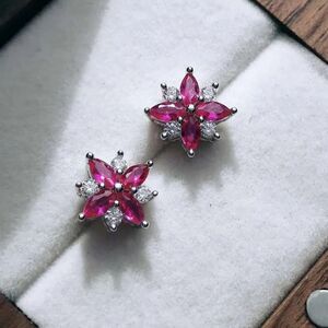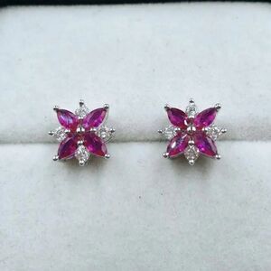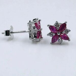 The Pink Ruby and Diamond Earrings feature 4 Marquise Cut High Quality Simulated Ruby and 4 Simulated Diamonds, per earring (1.14ct in total).High Quality lab-created Ruby Simulants from Switzerland are set in 92,5% Pure Silver. The special and delegate Ruby stud earrings give a subtle impression of prestige and beauty.