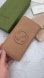 Elegant Gucci wallet in tan leather. Features iconic logo design and tassel.
