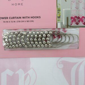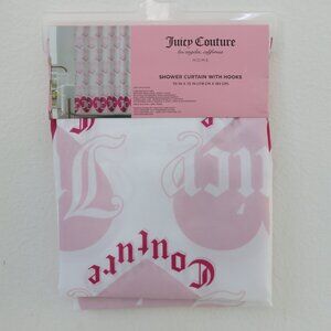 (#116) Juicy Couture White and Pink Shower Curtain with Hooks