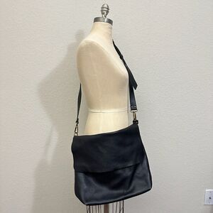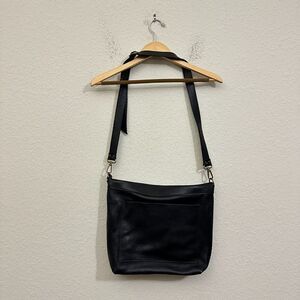 11600 LEATHER GOODS Messenger Bag W's Black Pebbled Leather Crossbody Handmade
