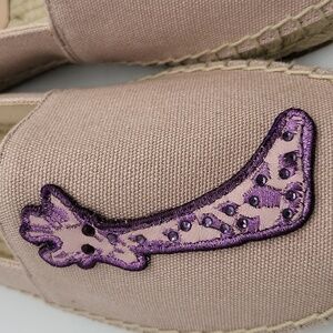 Brand new with tags – these Kate Spade New York Garden Giraffe espadrilles are a playful and stylish twist on a summer essential. In a soft pale vellum color, they feature whimsical embroidered giraffes in purple tones, paired with classic espadrille jute soles. Comfortable, chic, and full of character!