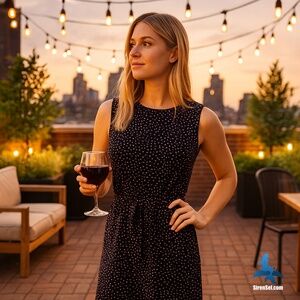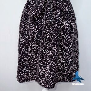 Express brings a modern touch to this sleeveless silhouette, cut from smooth woven polyester in black with blush and ivory dotted patterning. The fluid fabric moves gracefully while a self-tie waist defines the shape with understated ease. A concealed back zipper and softly flared skirt balance structure and movement. Designed for confidence and comfort, this piece shifts effortlessly from daytime appointments to evening gatherings—a refined wardrobe choice that endures season after season.
