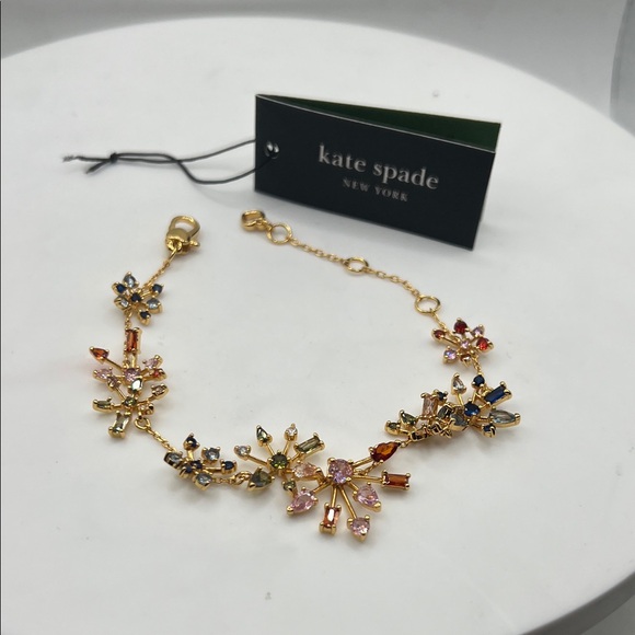 1174. Kate Spade Gold Bracelet w/ Multicolor Crystal Floral Design. 7” -8 1/2”.