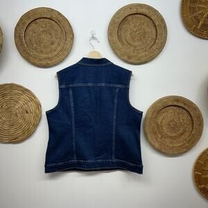 Elevate your wardrobe with this Madewell denim vest in a beautiful blue Rocco Wash. This plus size XXL vest features a flattering fitted silhouette, snap button closure, and classic collared neckline. Perfect for adding a touch of western-inspired style to any casual outfit. Sleeveless design allows for easy layering. Versatile piece that can be dressed up or down.