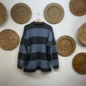 Elevate your wardrobe with this stylish Madewell rugby stripe polo sweater. The gray and blue color combination offers a refreshing twist on a classic design. Crafted from a blend of wool and alpaca, this sweater provides both warmth and comfort. The collared neckline and preppy stripes add a touch of sophistication, making it suitable for various occasions. Perfect for layering or wearing on its own, this plus-size XXL sweater is a versatile addition to any fashion-conscious individual's collection.