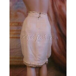 $1180 YVES SAINT LAURENT YSL Tan Silk Ruffle Trim Belted Skirt 10