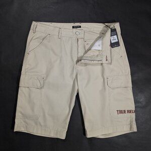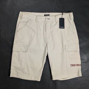 $119 True Religion Men's Logo Cargo SN Flap Shorts Size 40 Tapioca