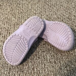 11C kids crocs in light purple. They have a bit of wear but just because it’s a light color, still in great condition.