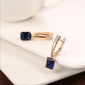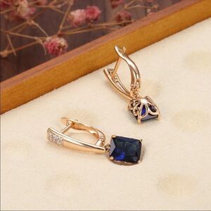 #11 NEW Rose Gold Blue Zircon Rectangle Drop Earrings