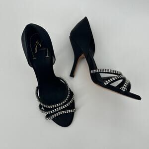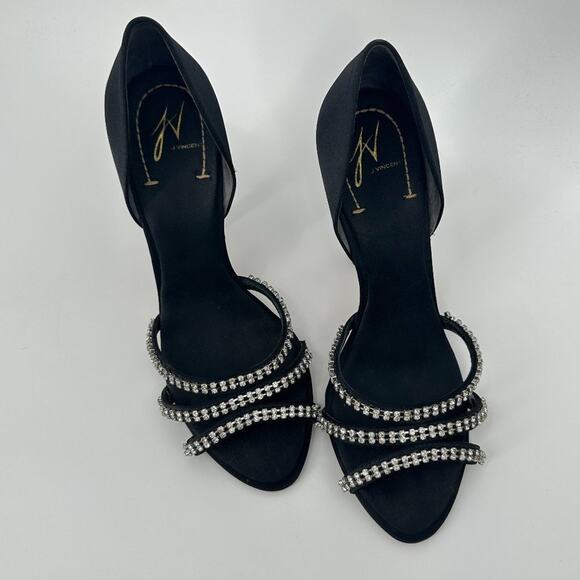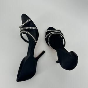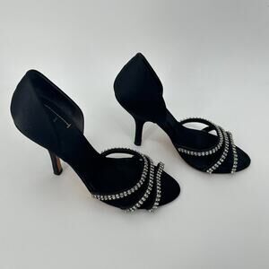 $11SALE!!! J Vincent Rhinestone Satin Black Heels Size 8