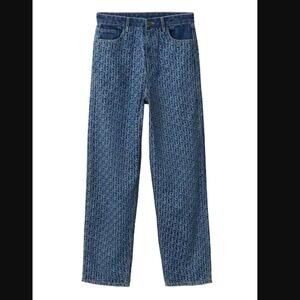 $11SALE!!! Mango Sustainable Blue High-rise Tapered Logo Jeans Size 2 NWT