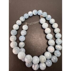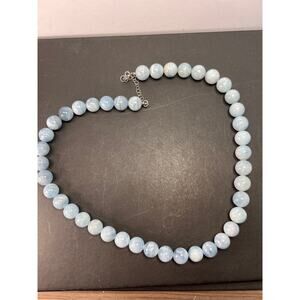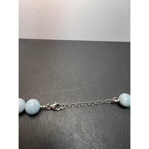Genuine aquamarine beads measuring about 11 mm in diameter. Necklace measures about 20 inches in length with extension chain adding another 1.5 or so inches. Sterling silver lobster clasp and extension chain. Strung on wire for durability. 925 BBJ