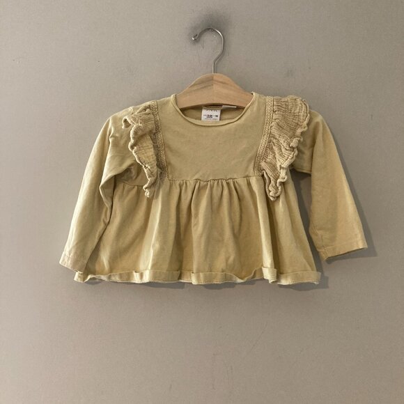 zara! girls' soft yellow long-sleeve tee with ruffle details