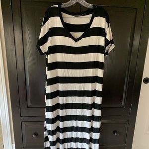 12 Ami V-Neck Pocket Short Sleeve Loose Maxi Dress Black Stripe Size L