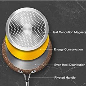 - Tri-Ply Construction Base: the unique induction bottom design with heat conduction magnetic, allows for quick and even heating distribution. No dead zone or hot spots, precise temperature control, reduced cooking time and energy conservation.