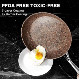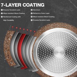 -- 7 Layers Coating: 4x Harder Coating, wear-resistant. 3 Layers of granite stone coating are used inside and outside the pan, reinforced coating with high durability, ensures nonstick lasts, and for easy cleaning.