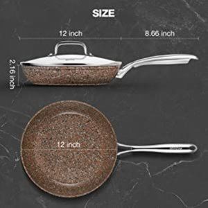 HLAFRG: 12" - BROWN GRANITE - NONSTICK SKILLET/ FRYING PAN with GLASS LID