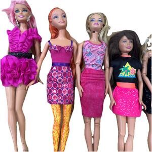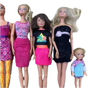 The product is a set of 12 Barbie dolls each dressed in different outfits as shown in the photos. These play dolls feature the iconic Barbie character and come with a variety of outfits to enhance imaginative play for children. Each doll offers a unique styling option, allowing kids to create different looks and stories while playing with their favorite Barbie characters. Perfect for young girls who enjoy collecting and styling their dolls, this set provides endless opportunities for creativity and fun. We are not sure if they were all actual Barbies. Please see the photos for accurate product condition and details. Thank you for shopping with Integrity Sales.