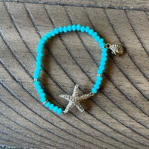 12 Bracelet Lot Adjustable Stretchy Beaded Rhinestones Starfish Tassel