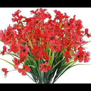 12 Bundles Outdoor UV Resistant Fake Flowers for Garden (Deep Red)