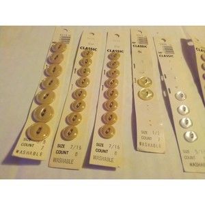 Classic Brand Button Lot Assorted Shades Sizes of White and Tan Sizes 12 cards.