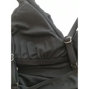 12 Chaps Women's Black Bathing Swim Suit Top New V-Neck Ruffle Adjustable Strap