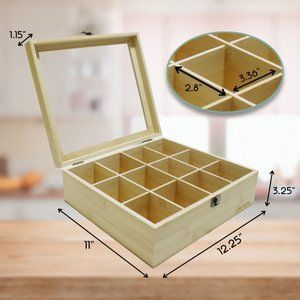 12 Compartment Bamboo Tea Bag Organizer