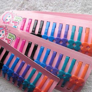 12 Eye Candy Bright All Plastic Flat Tight Hair Barrettes Clips Pins No Metal