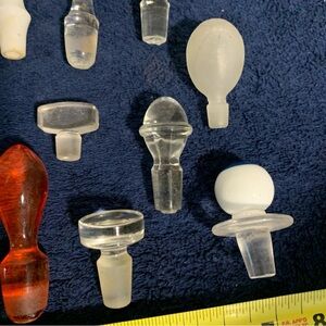 12 Glass Vintage Antique MCM Perfume Genie Bottle Decanter Stopper Red Green Lot