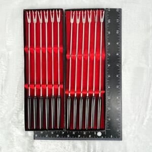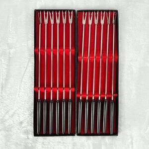 12 Hankyu No. 155 Stainless Steel Cocktail Forks Black Handle 10.75" Japan Boxed