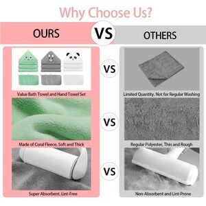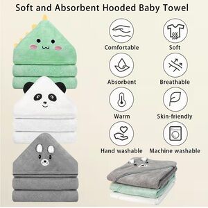 Soft and Absorbent Baby Bath Towels: The bath towels are made of high-quality coral fleece material, super soft and highly absorbent, quickly drying your baby's hair and body while keeping them dry and comfortable. They are gentle on your baby's delicate and sensitive skin, without irritation.
