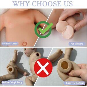 Soft and Lifelike: The silicone dolls feature meticulously crafted skin with a soft and elastic touch.The Soft body of the doll is solid silicone, which is very different from the hollow vinyl. Our silicone baby doll is softer and more realistic, and the limbs have no joints, so the limbs can be folded and placed at will which can provide an authentic hugging and cuddling experience for children.
