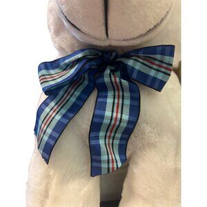 This plush polar bear is designed for children ages 4 and up. Its soft body and charming blue plaid bow make it a delightful companion.