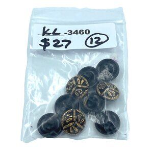 12 Items Buttons Dragonfly Black Vintage Glass Mold Gold Finish