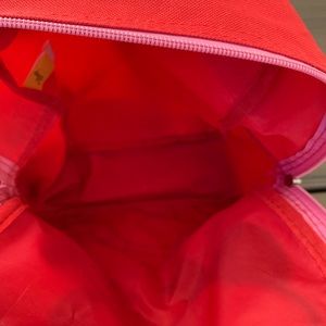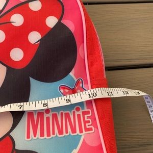 12β (toddler size) red and pink Minnie Mouse backpack with adjustable straps. Some light crayon marks on the inside and outside but nothing overly noticeable. Cute backpack for your little one to take on vacation or out and about π