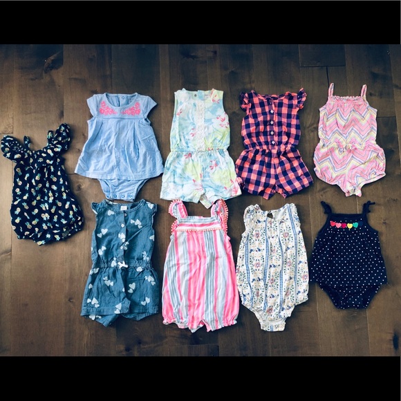 12 months, Girl rompers (bottom 2 are actually onesies) mostly Carter’s, one Old Navy. All in great condition. Also available for select purchase!