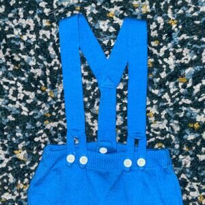 ahh!! the cutest little blue knit overalls for your babes! tagged as 12 months, made from acrylic knit. NO STAINS!