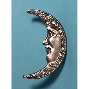 1/2 Moon Silver tone rhinestone Brooch or Pin