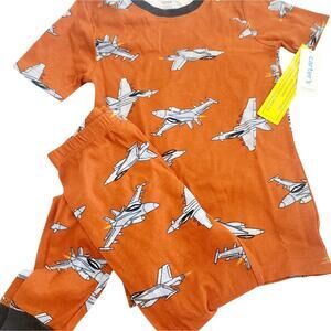 New with tags Carter's 4 piece cotton pajamas. two tops and two pants. These vibrant orange pajamas feature a fun airplane print, perfect for little aviators.
