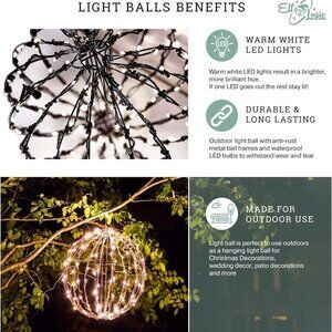 PREMIUM LED GLOBE LIGHT WITH CONVENIENT TIMER: Premium LED light ball with fold-flat metal frame and LED mini lights individually wrapped to a 12” metal frame for a uniform appearance that looks great even up close! Our 6/18 hour timer is designed to cycle on for 6 hours and turn off for 18 hours, so you can get back to enjoying the holiday season!